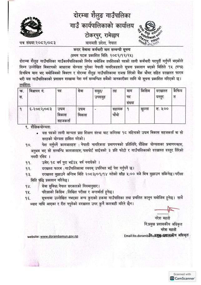 उद्यम विकास सहजकर्ता करार सेवामा कर्मचारी माग सम्बन्धी सूचना