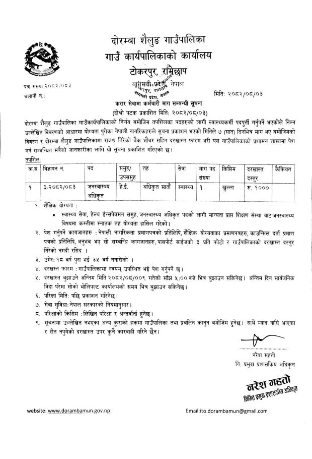 » जनस्वास्थ्य अधिकृत करार सेवामा कर्मचारी माग सम्बन्धी सूचना