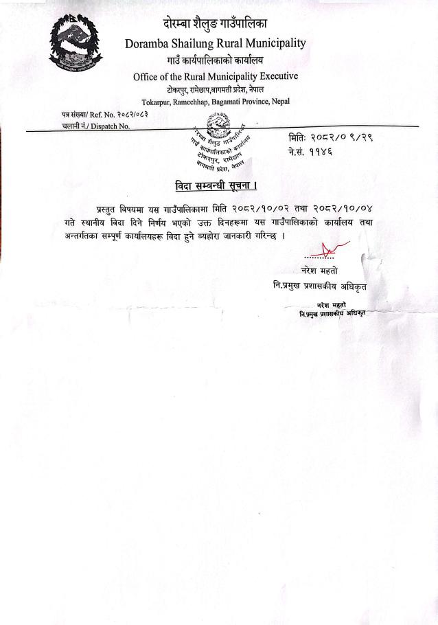 विदा सम्बन्धी सूचना ।