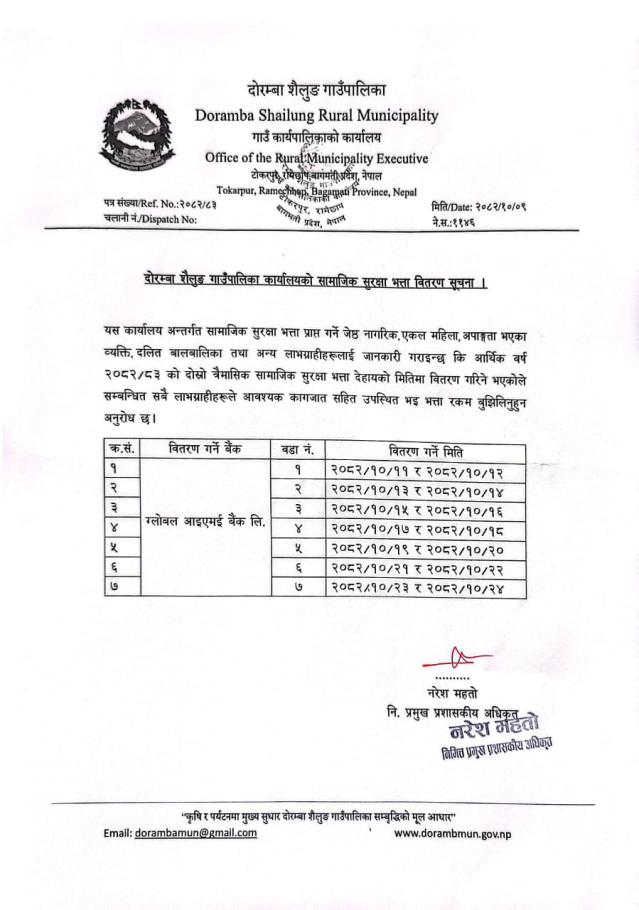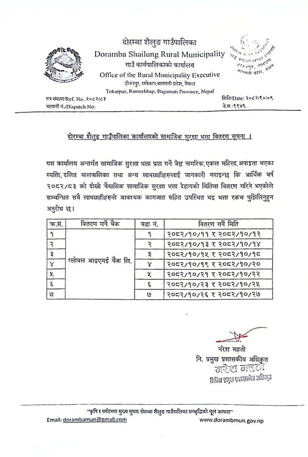 सामाजिक सुरक्षा भत्ता वितरण सूचना ।