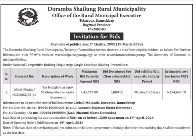 Invitation for Bids Tar Podighyang Sano Shaliung Shalme Sadak Istarounnati