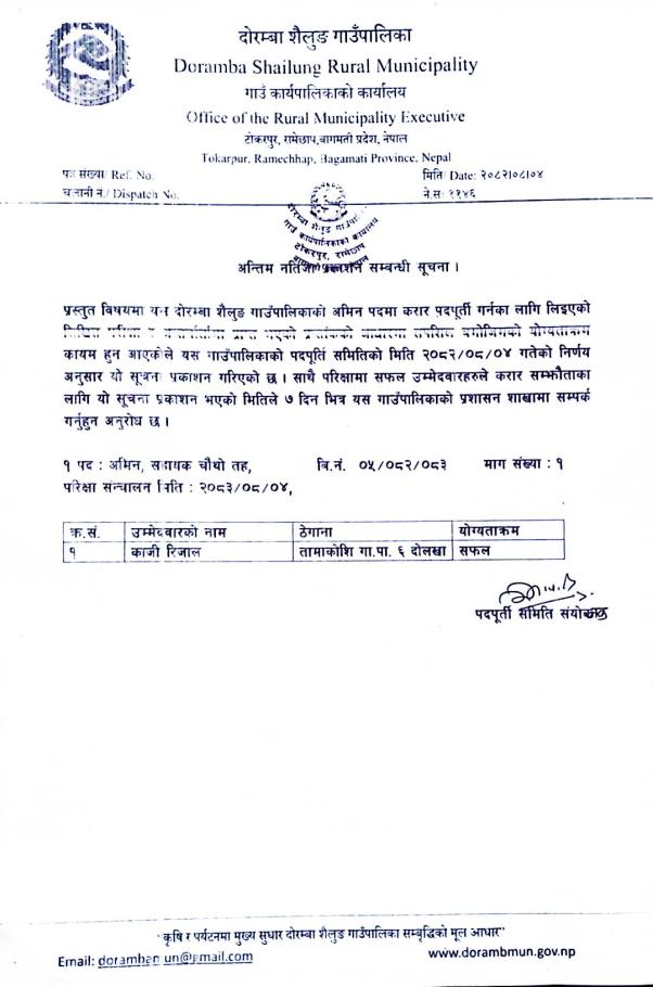 अन्तिम नतिजा प्रकाशन सम्बन्धी सूचना ।