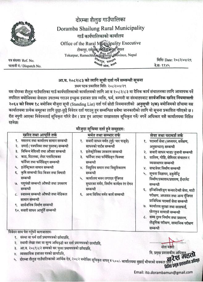 आ.व. २०८२/८३ को लागि सूची दर्ता गर्ने सम्वन्धी सूचना
