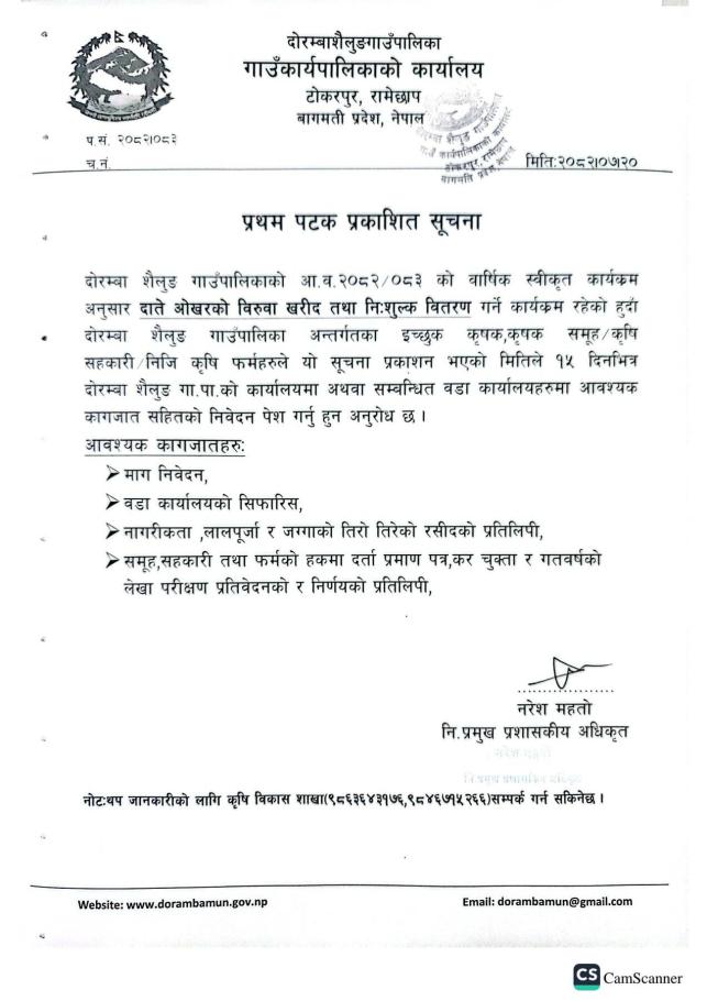 » दाते ओखरको विरुवा खरीद तथा निःशुल्क वितरण