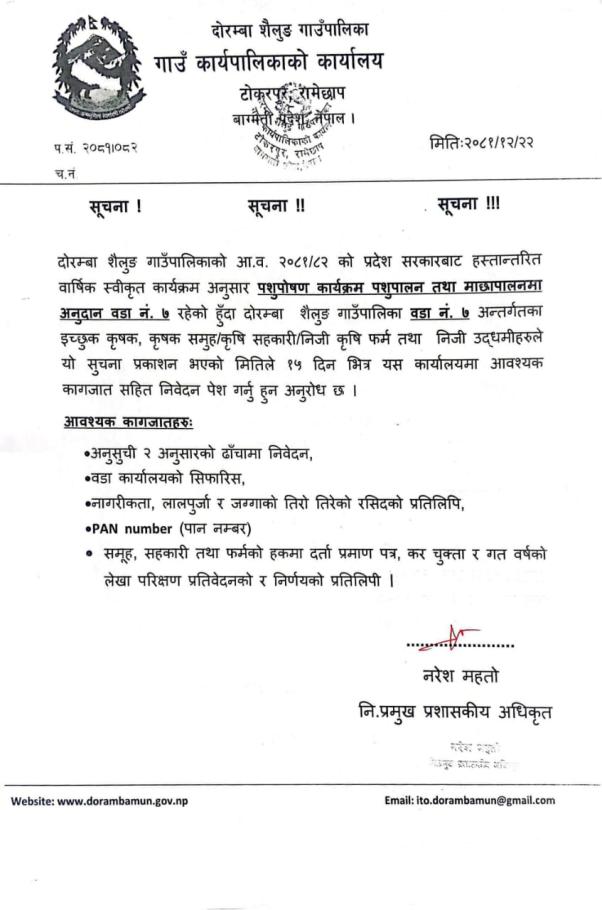 » पशुपोषण कार्यक्रम पशुपालन तथा माछापालनमा अनुदान वडा नं. ७
