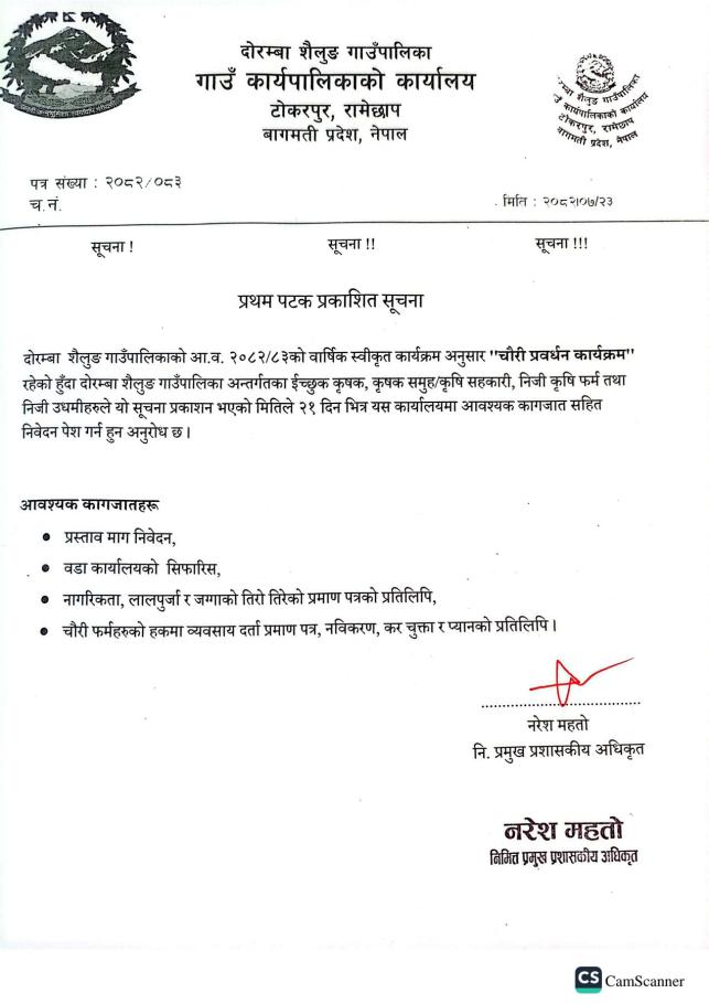 » प्रथम पटक प्रकाशित सूचना चौरी प्रवर्धन कार्यक्रम