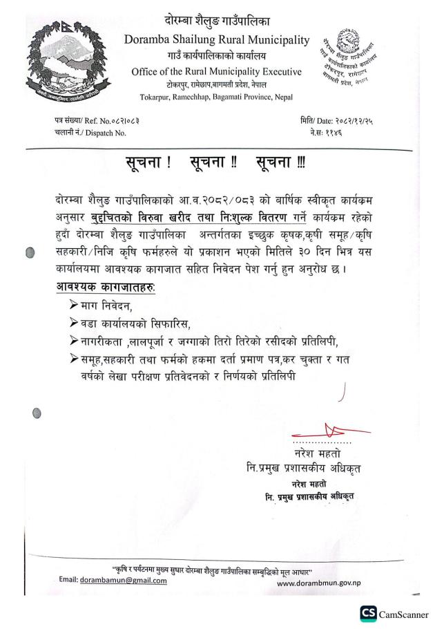 "कृषि र पर्यटनमा मुख्य सुधार दोरम्बा शैलुङ गाउँपालिका सम्बृद्धिको मूल आधार "