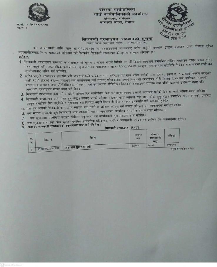 सार्वजनिक खरिद/बोलपत्र सूचना