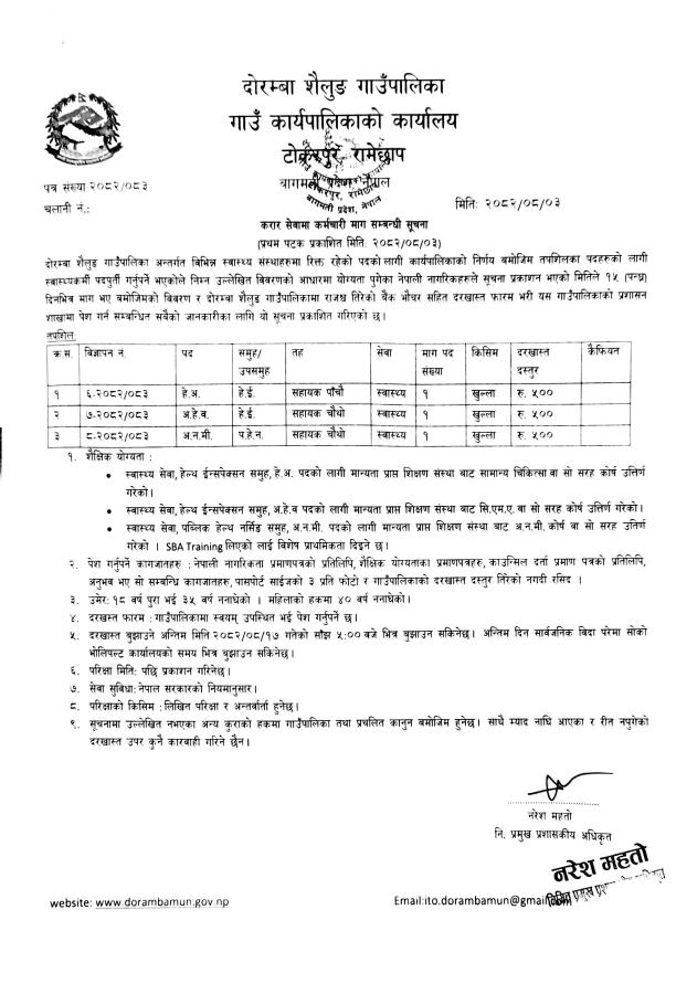 वैद्य,अ.न.मी.,अ.हे.व. करार सेवामा कर्मचारी माग सम्बन्धी सूचना
