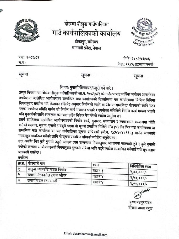 २०८२/०३/०६ गुनासो/सिकायत/उजुरी गर्ने बारे ।