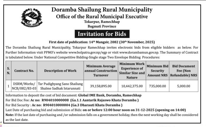 Invitation for Bids Tar Pudighyang Sano Shailung Shalme Sadhak Istarunnati